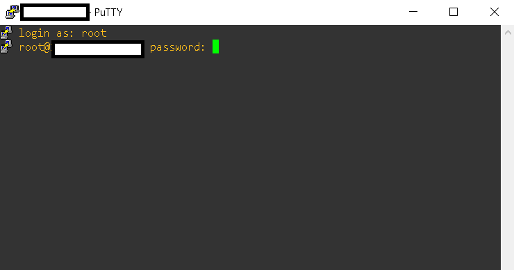You will be prompted for your username and password. Enter your username, which is root, and then enter your password as per the email sent to you.