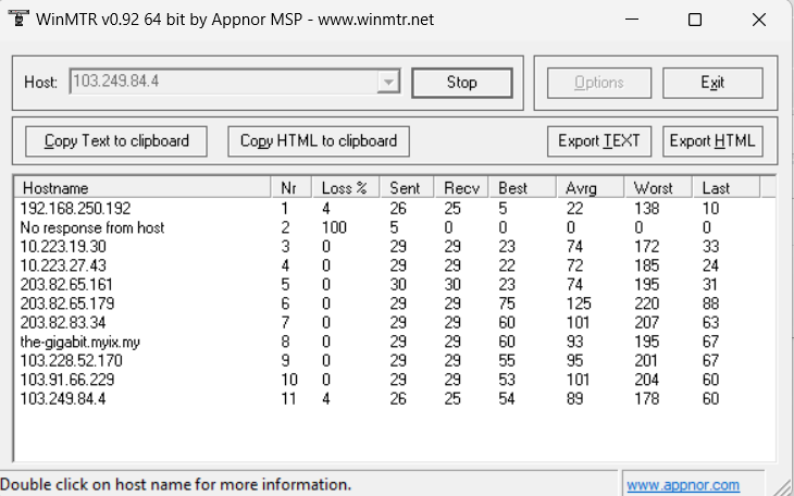 Let the test to run for awhile or until around 100 data is sent. Export the result in TEXT or screenshot for our support team upon requests for reference.