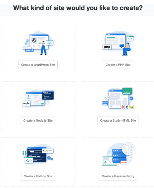 Once authenticated, you can monitor and manage your VPS through this modern and elegant web interface. The panel has many capabilities, and I invite you to explore them on your own. From this point, you can create a new website to host it in the “Sites” section.