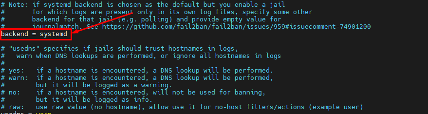 sudo cp /etc/fail2ban/jail.conf /etc/fail2ban/jail.local