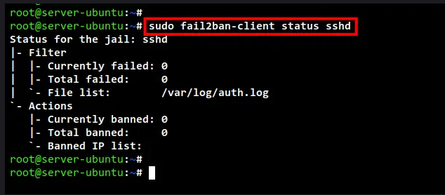 Another important thing about Fail2ban here is how to ban and unban IP addresses on Fail2ban. To do that, you can also use the fail2ban-client command.
