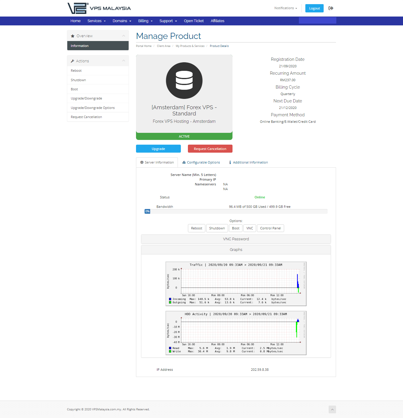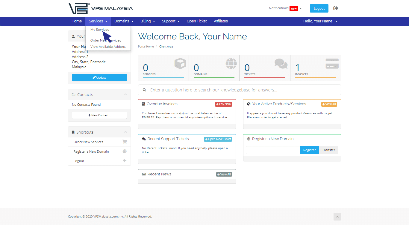 Log in to client area using your username and password.