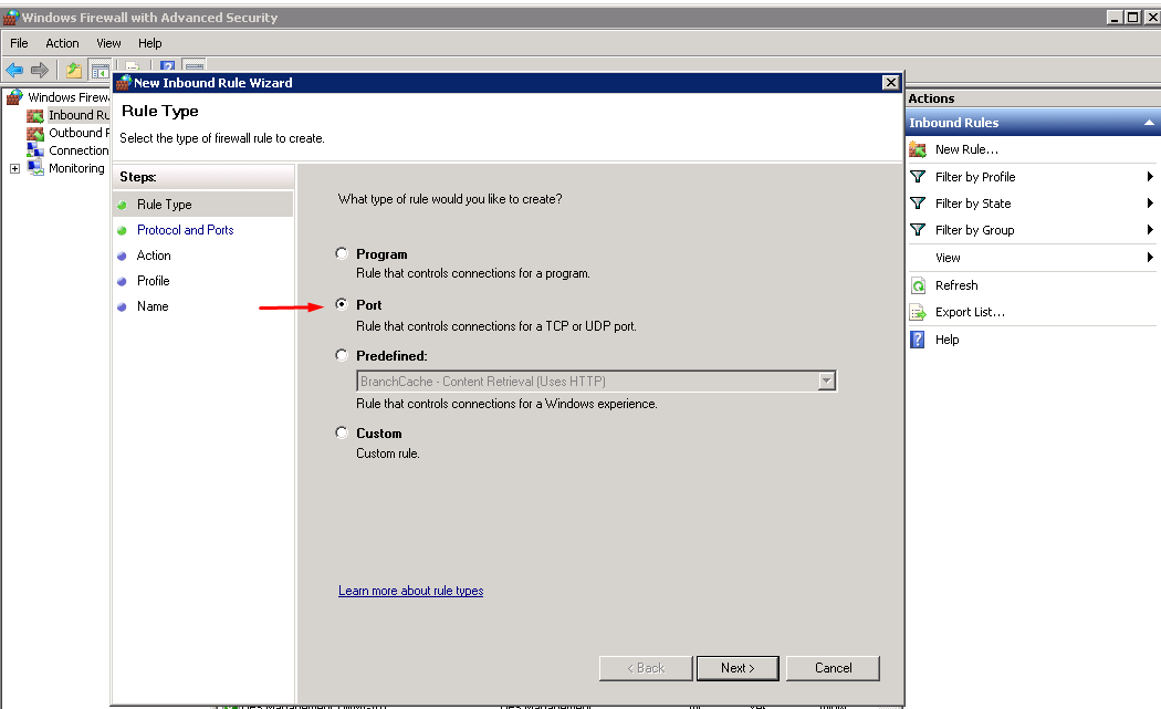 Open customized Port in Windows Firewall