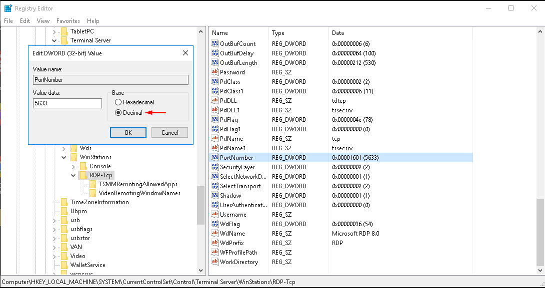 When you connect to a computer (either a Windows client or Windows Server) through the Remote Desktop client, the Remote Desktop feature on your computer "hears" the connection request through a defined listening port (5633 by default). You can change that listening port on Windows computers by modifying the registry.