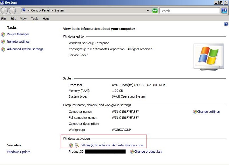 The System basic information page will open. At the bottom of it, under the Windows Activation section, the remaining days from the grace period (activation period) is displayed.