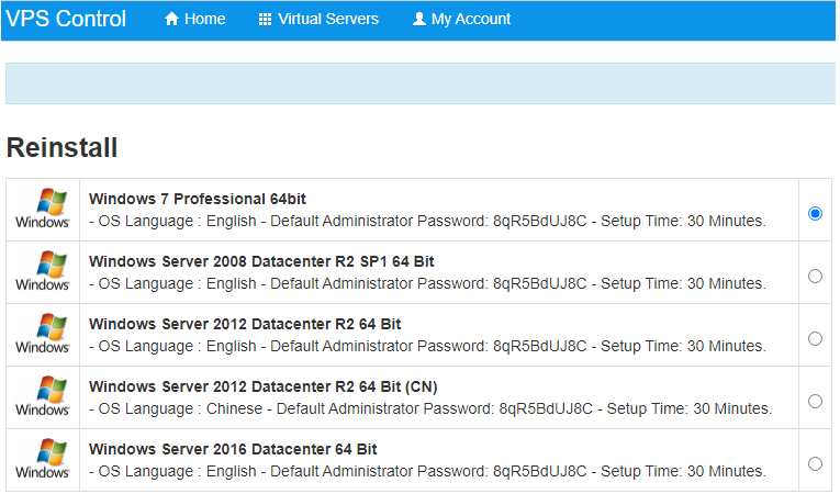 Windows VPS Operating System re-installation :