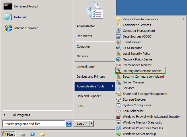7. Click Start, Administrative Tools, then Click Routing and Remote Access.