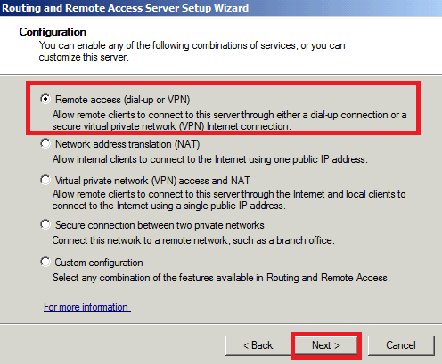 8. On the Configuration page, select Configure and Enable Routing and Remote Access option.
